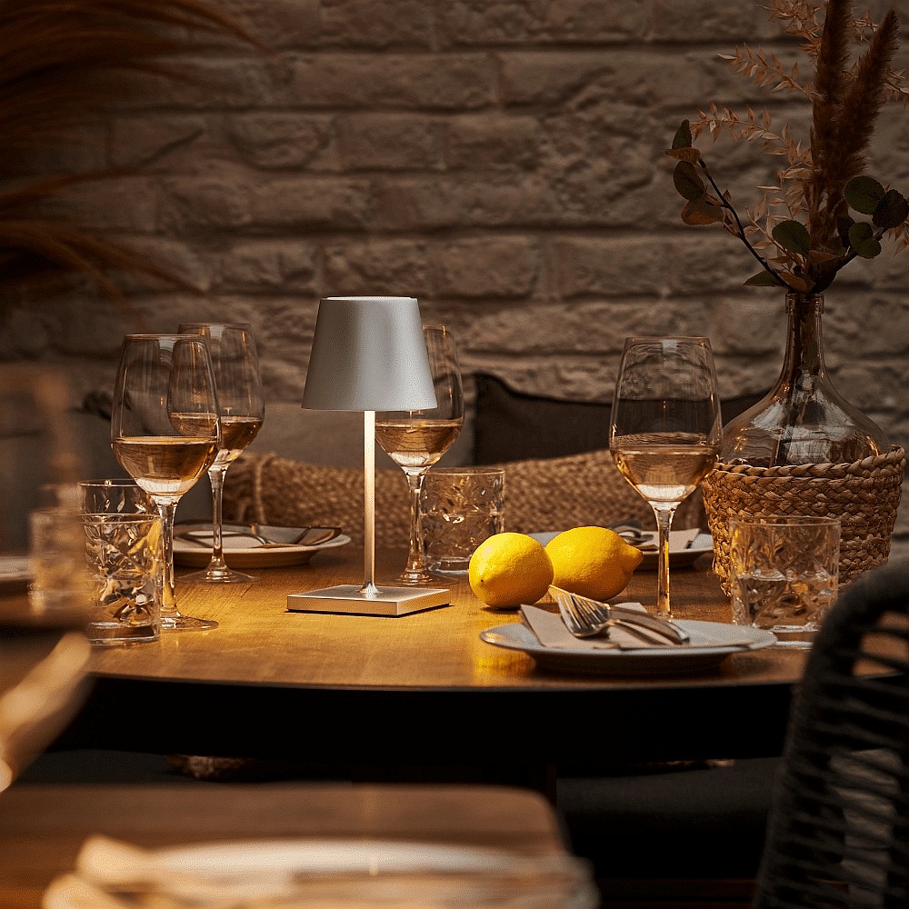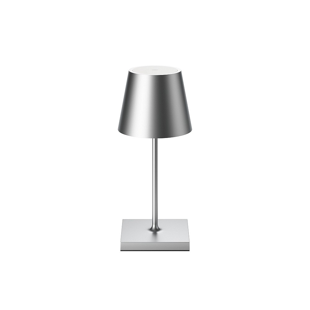 battery table lamp NUINDIE MINI USB-C round IP54, silver anodised dimmable
