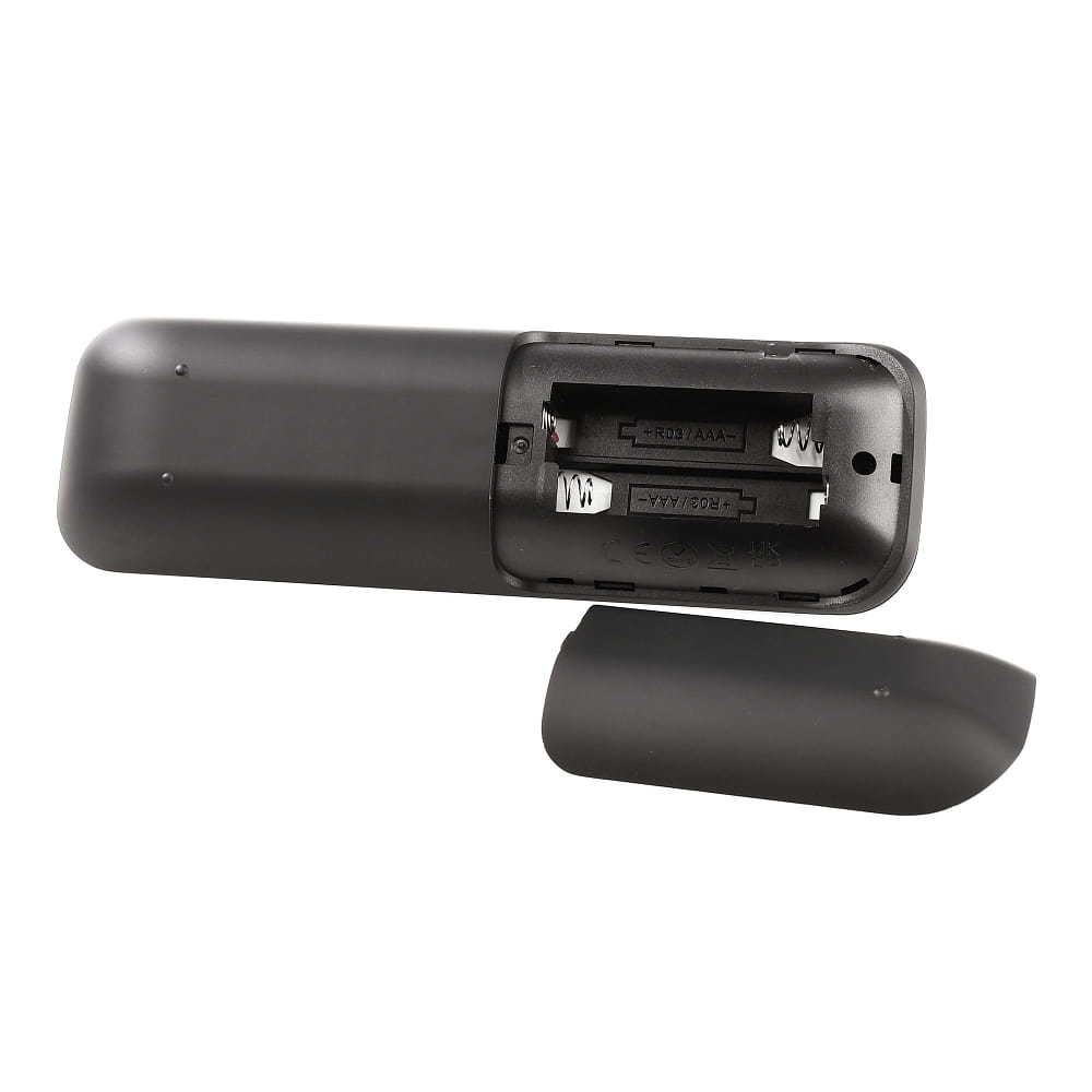 The housing of the remote control is made of high-quality plastic and stands out with its elegant design in black. With dimensions of 15.3 x 4.7 x 1.9 cm, it fits comfortably in your hand and can be stored in any pocket or drawer.